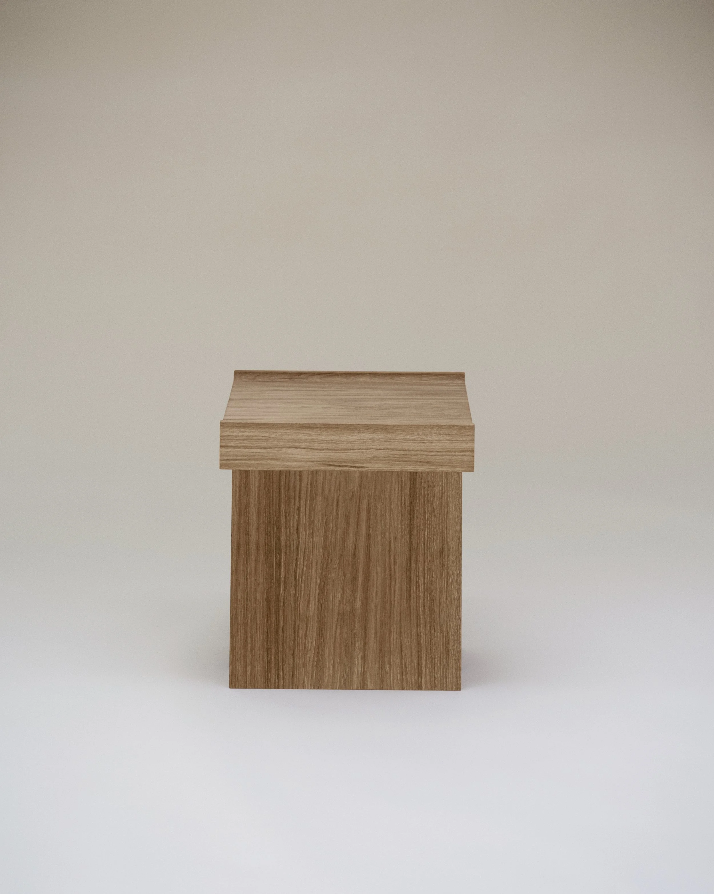 With COLT, contrast became a defining language. A polished steel shell met the supple grain of leather, two opposing materials reconciled through measured geometry. Visible notches marked their intersection, lending the piece an industrial yet crafted sensibility. Over time, the leather would deepen in tone, while the steel retained its lustre. Designed for versatility, COLT functioned as a sofa end, occasional seat, or compact side table — a sculptural object rooted in utility.