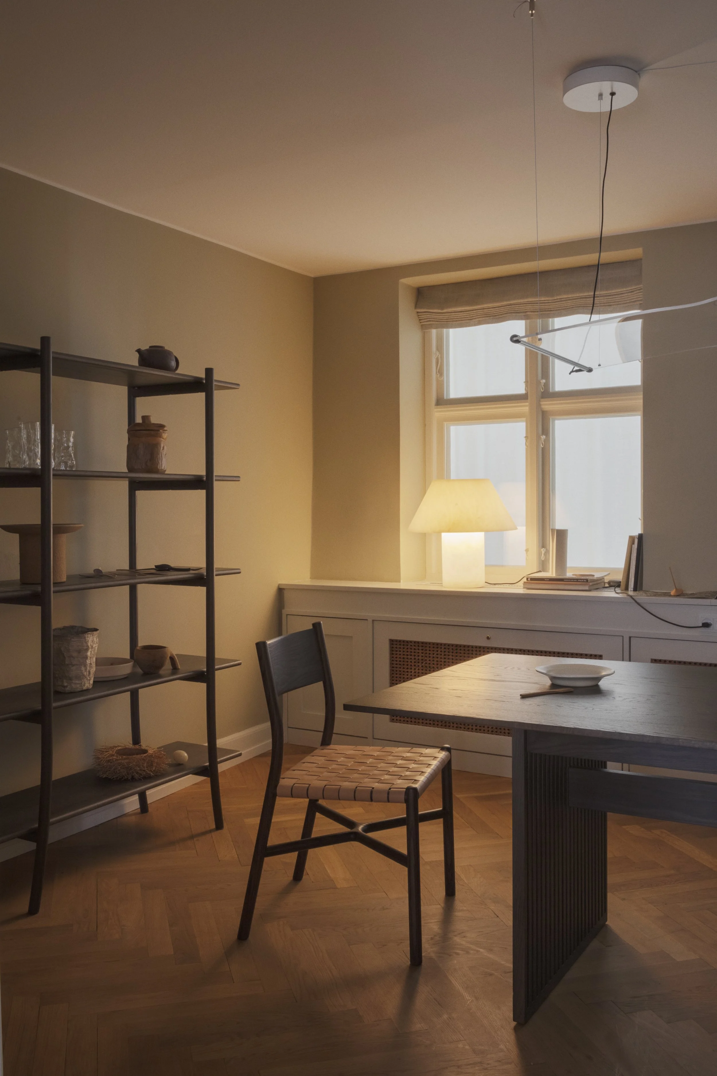 “We wanted to focus on the moments of daily life where thoughtful objects matter,” says Bothe. “Both Ariake and Parachilna design for human connection: how people gather, work, and live together. The apartment setting reveals how furniture and lighting can create an environment that is a respite from the busy world while supporting intentional living.”