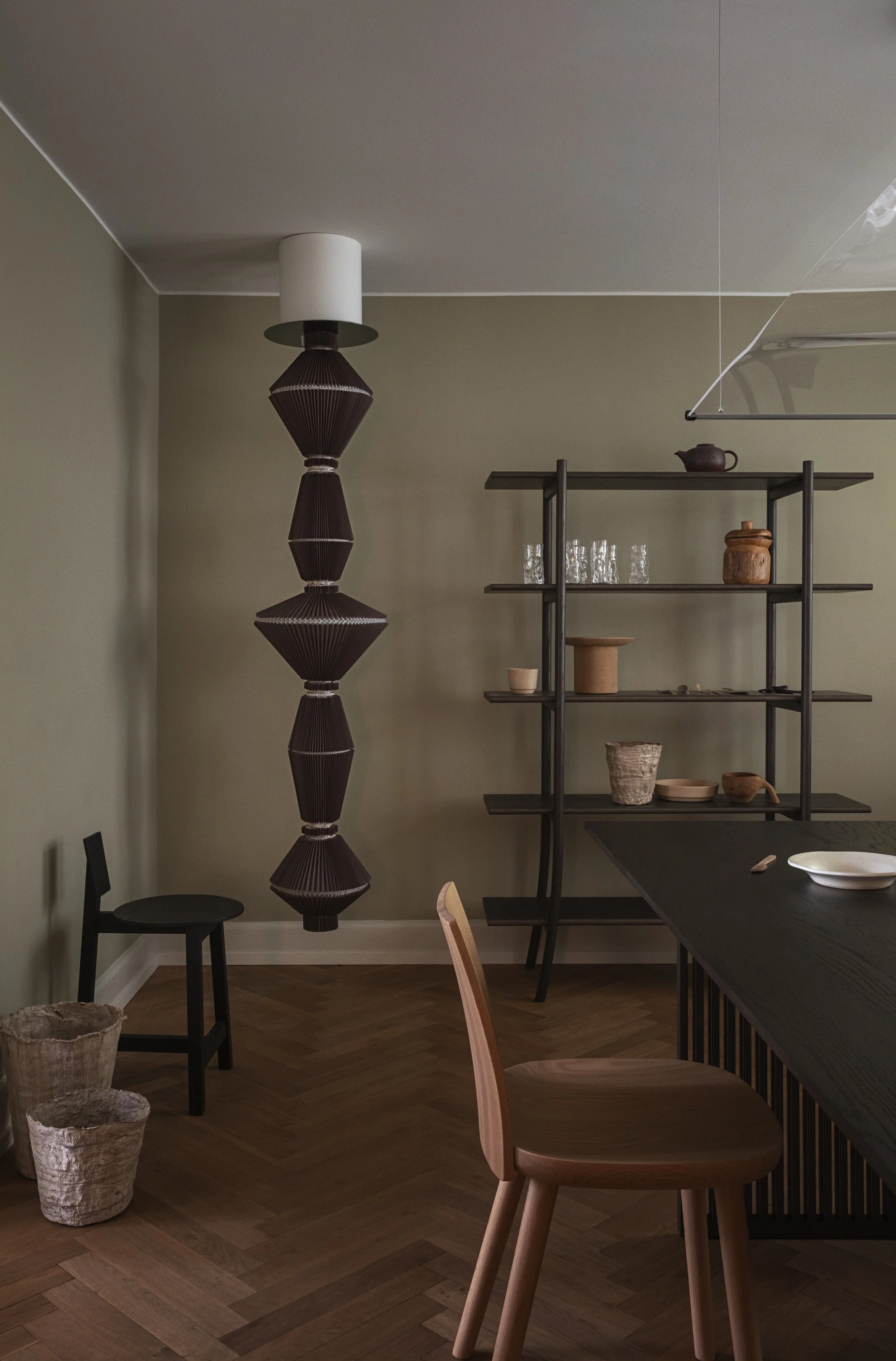 Curated by Gabriel Tan, Creative Director of Ariake, and styled by Tine Daring, the apartment installation offers a dialogue between two brands who, while based in different parts of the world, share a commitment to patient refinement and expressive materiality. Ariake’s sculptural yet restrained furniture forms a quiet backdrop for conversation, while Parachilna’s poetic lighting plays with atmosphere and tactility – where light becomes an architectural gesture rather than simply a utility.