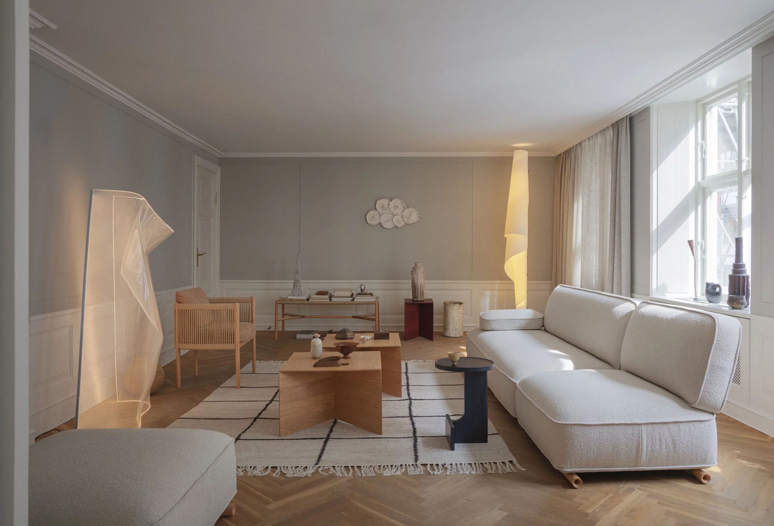 Complementing the core offering are handcrafted accessories and objects that enrich the scenography: collectible objects by Origin Made, textural rugs by Sera Helsinki, and Kaji Bark Sculptures by Gen Taniguchi of Nao Washi – a 300-year-old family-run washi paper atelier in Japan. Together, these pieces offer a layered, meditative sensibility that invites slowing down and presence.