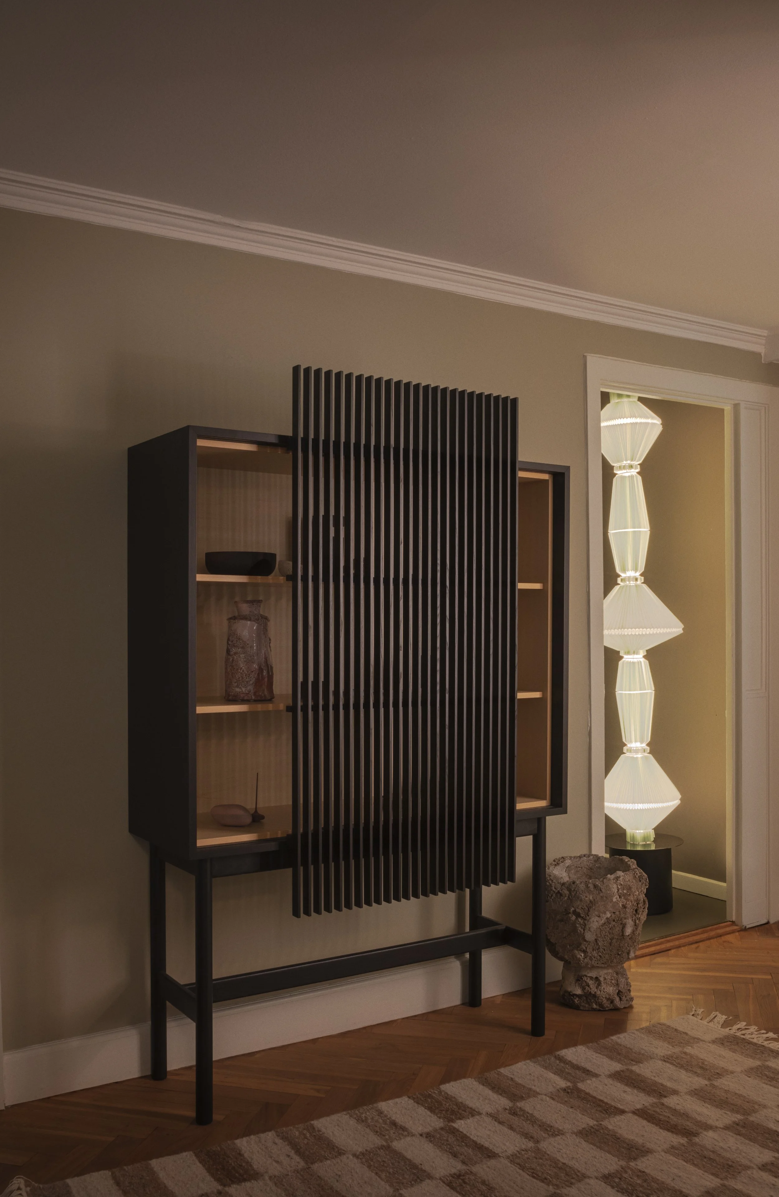 Unfolding within a tucked-away apartment on the third floor of The Conary, the project is presented by Est.18, a Nordic distributor known for representing makers with a strong focus on traditional craftsmanship and collaborative design. The title, which loosely translates to “secret apartment” or “hidden sanctuary,” reflects the intention behind the exhibition: to create a retreat from the city’s noise and tempo, where considered furniture and lighting shape the rituals of everyday life.