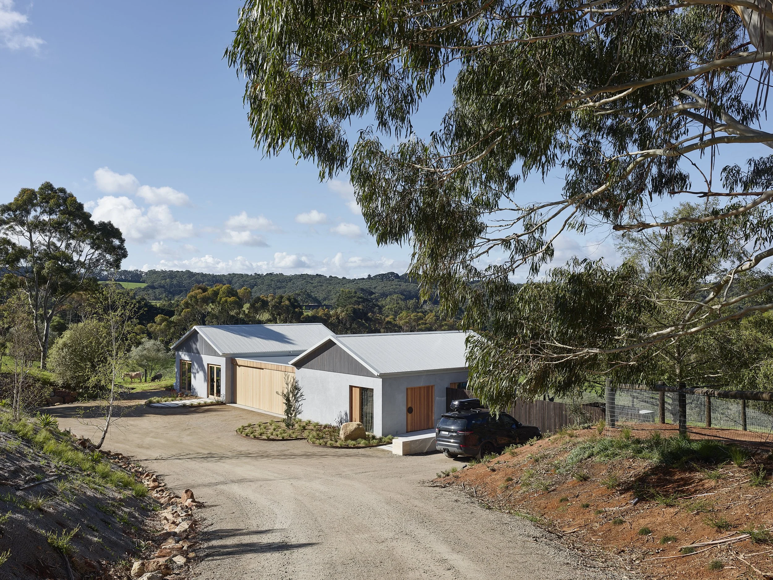 A former pair of cabins in Red Hill, Victoria, has been transformed by Tom Robertson Architects into a luxurious 50-square-metre retreat that combines a private guest suite with an artist's studio.