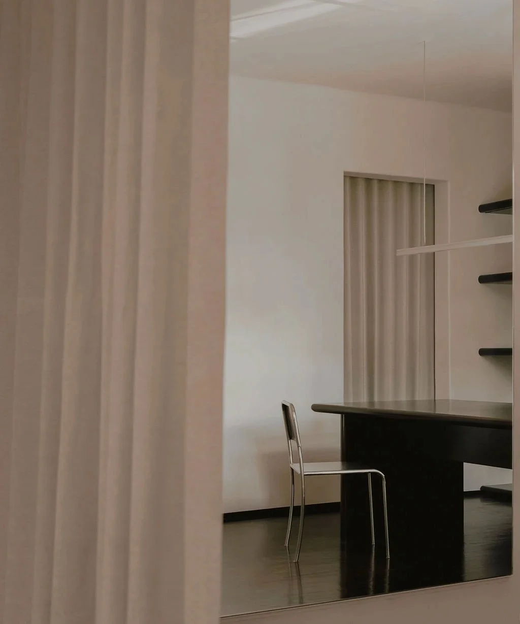 Located in the heart of CDMX, the store unfolds through a series of interconnected volumes, moving from public to more private zones. Visitors are introduced to the boutique through a calm procession that begins at the entrance and waiting room, flows through the central exhibition area and sales room, and ultimately transitions into more intimate spaces like the fitting rooms. This sequence is gently demarcated by a large wooden arch, acting as a visual and spatial threshold between zones.