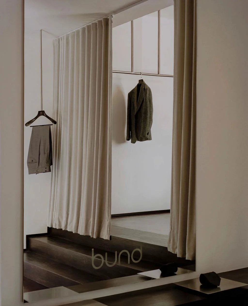 This tension between the structured and the ephemeral defines the atmosphere. The sobriety of the base materials is softened by the ambient presence of light and texture, creating a rhythm that reflects the dual nature of the Bund identity: precise yet relaxed, classic yet open-ended. Through its layering of spatial transitions and material contrasts, Bund Mexico offers a richly considered retail environment that feels both grounded in tradition and responsive to its vibrant cultural setting.
