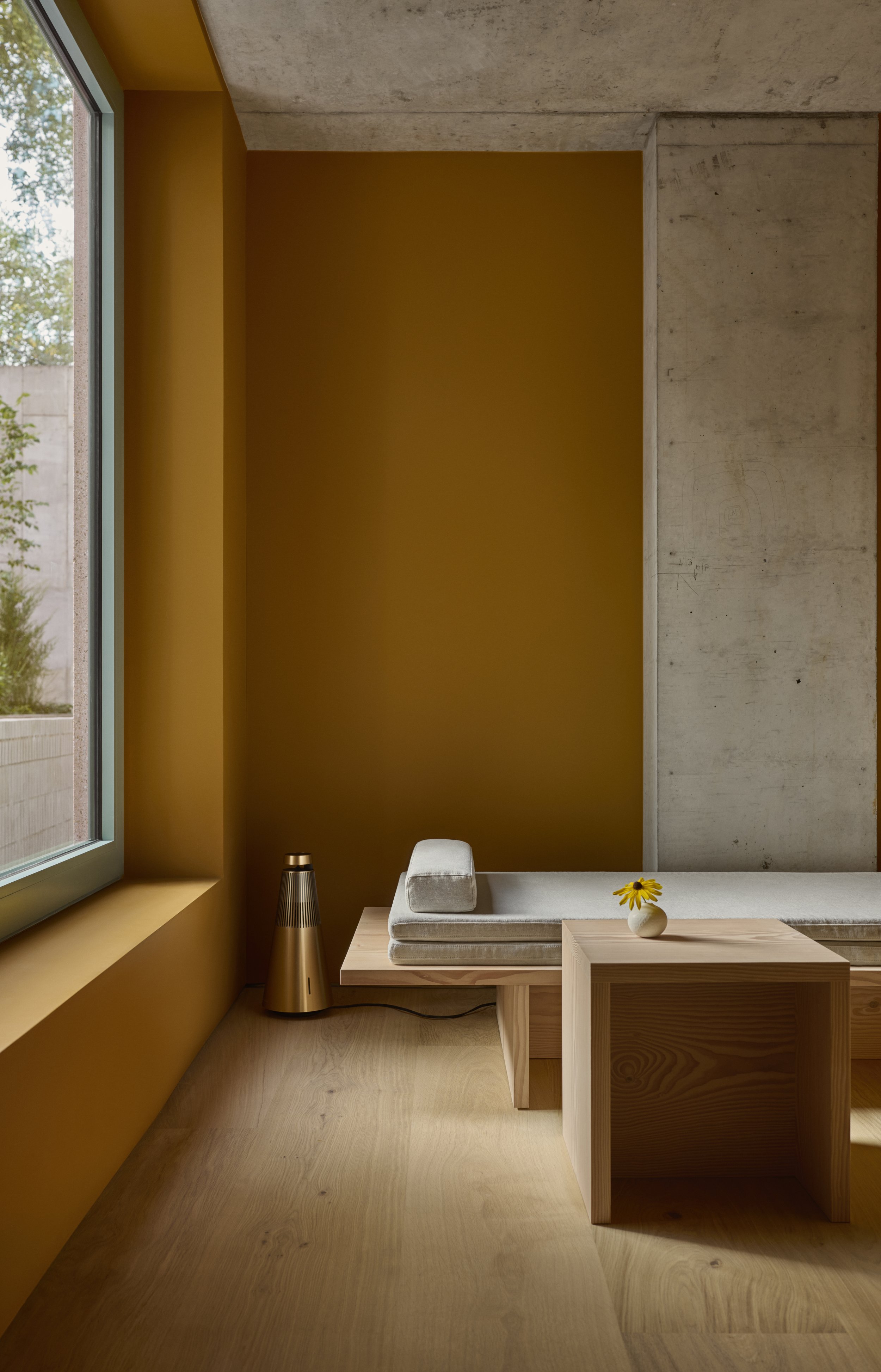 Furniture gathers as a conversation among contemporaries and ancestors. Thulstrup’s own pieces, including the Arv Collection for Brdr. Krüger, sit alongside designs by John Pawson for Dinesen. Upholstery in Levino by Sahco adds a quiet tactility, while vintage works by Arne Jacobsen and Severin Hansen, reissued by Dagmar, lend a historical layer that deepens the narrative of Scandinavian craft. Each piece feels considered, as if invited to contribute rather than to decorate.