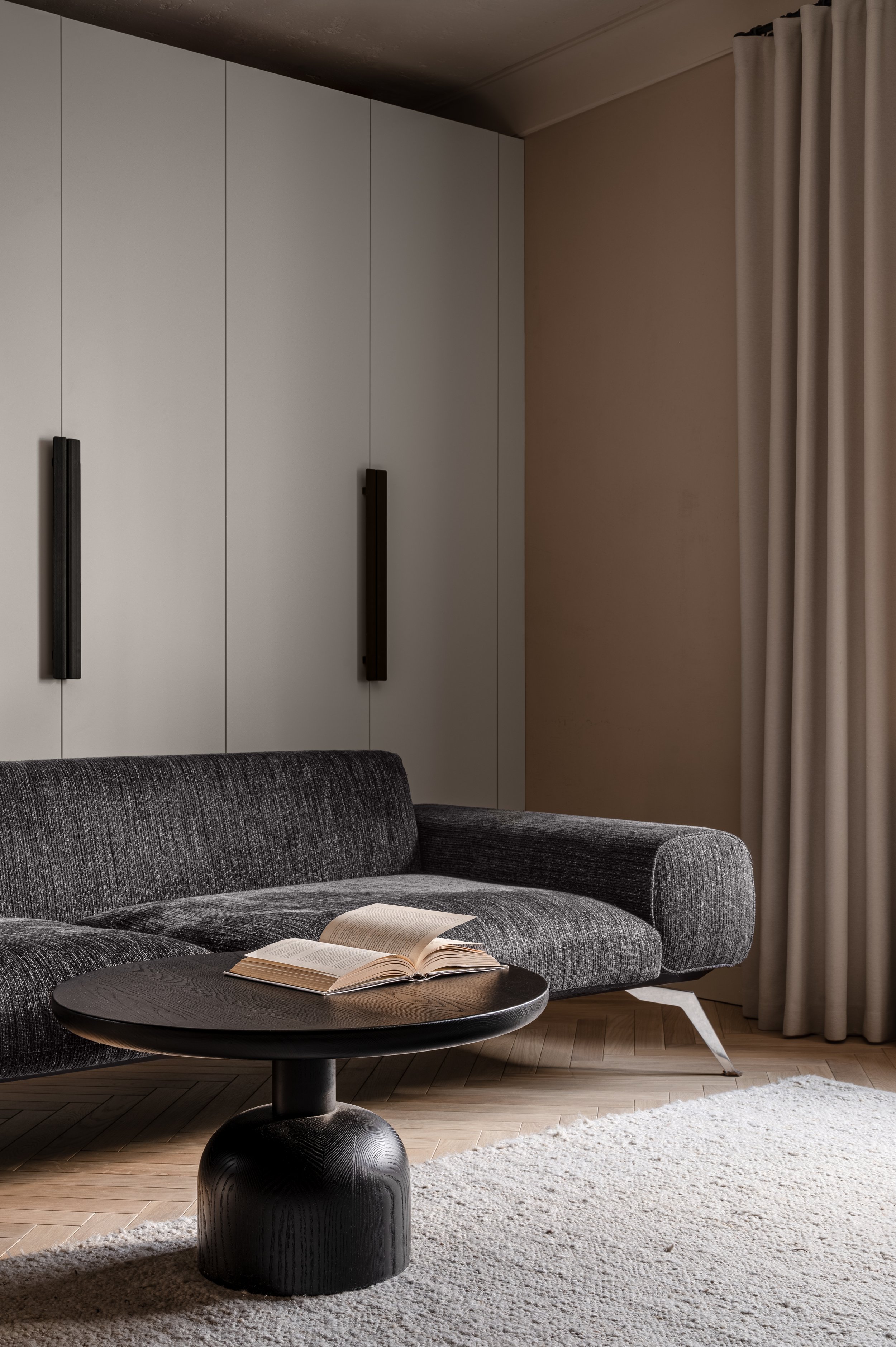 “ I aimed to create an apartment where you do not feel like it was newly designed, perfectly overthought, or artificial. I want that from the first day the client feels the space is their lovely home. The place with a hidden personal history. The place where you choose to come back from the office or a long journey.”
