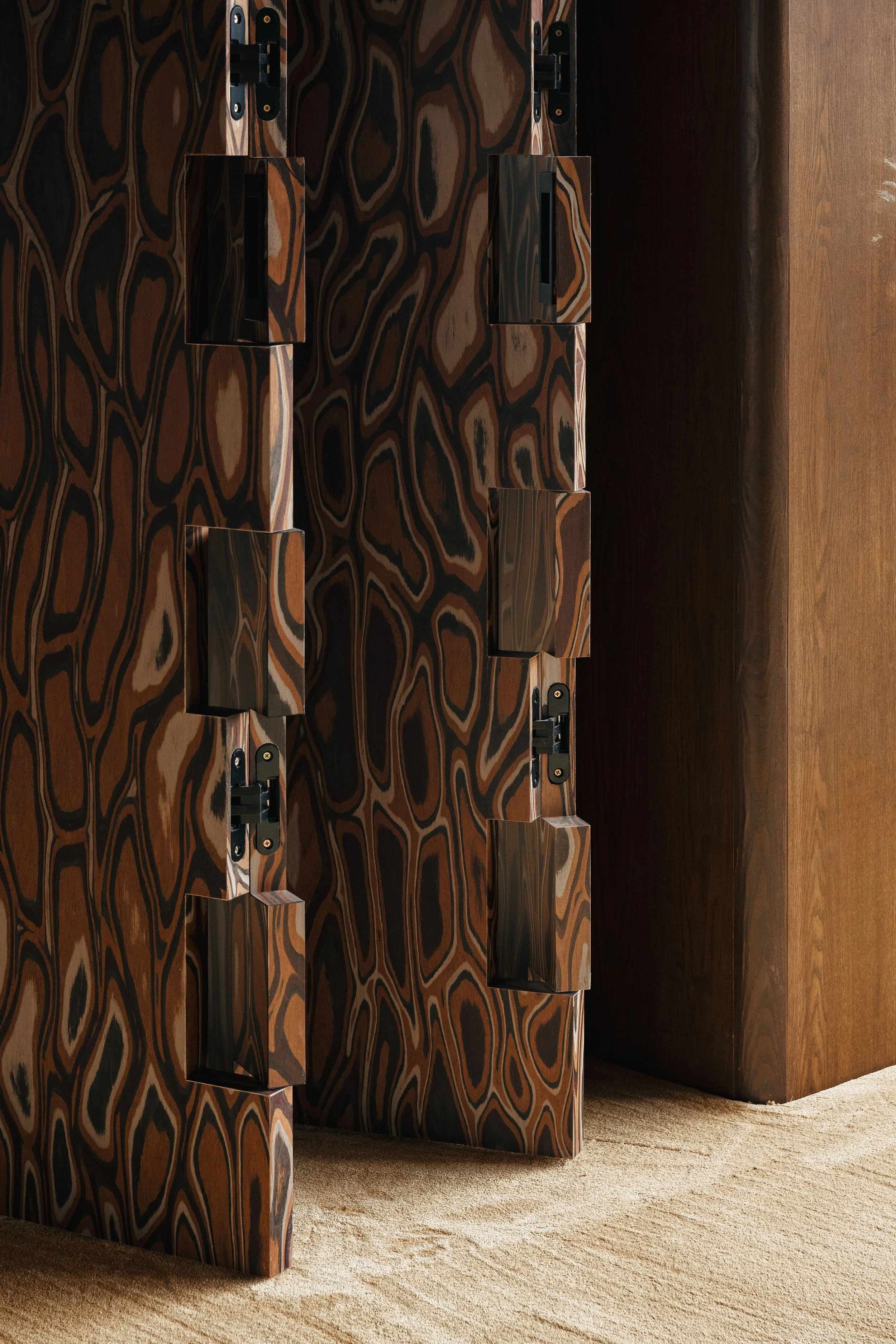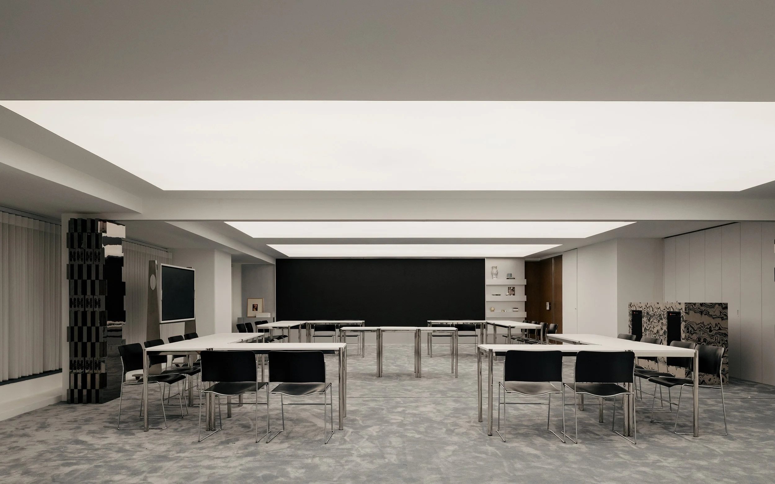 Construction techniques further support the project’s long-term flexibility. Modular components enable reconfiguration, while custom fabrication delivers precision and specificity where needed. DualSpace integrated sculptural hardware, including carpet-wrapped handles and bespoke knobs, and introduced 3D-printed elements to achieve complex forms and tailored details with production efficiency. Flexible furniture systems are engineered to shift with changing occupancy patterns, supporting both day-to-day routines and event modes without a wholesale transformation of the interior.