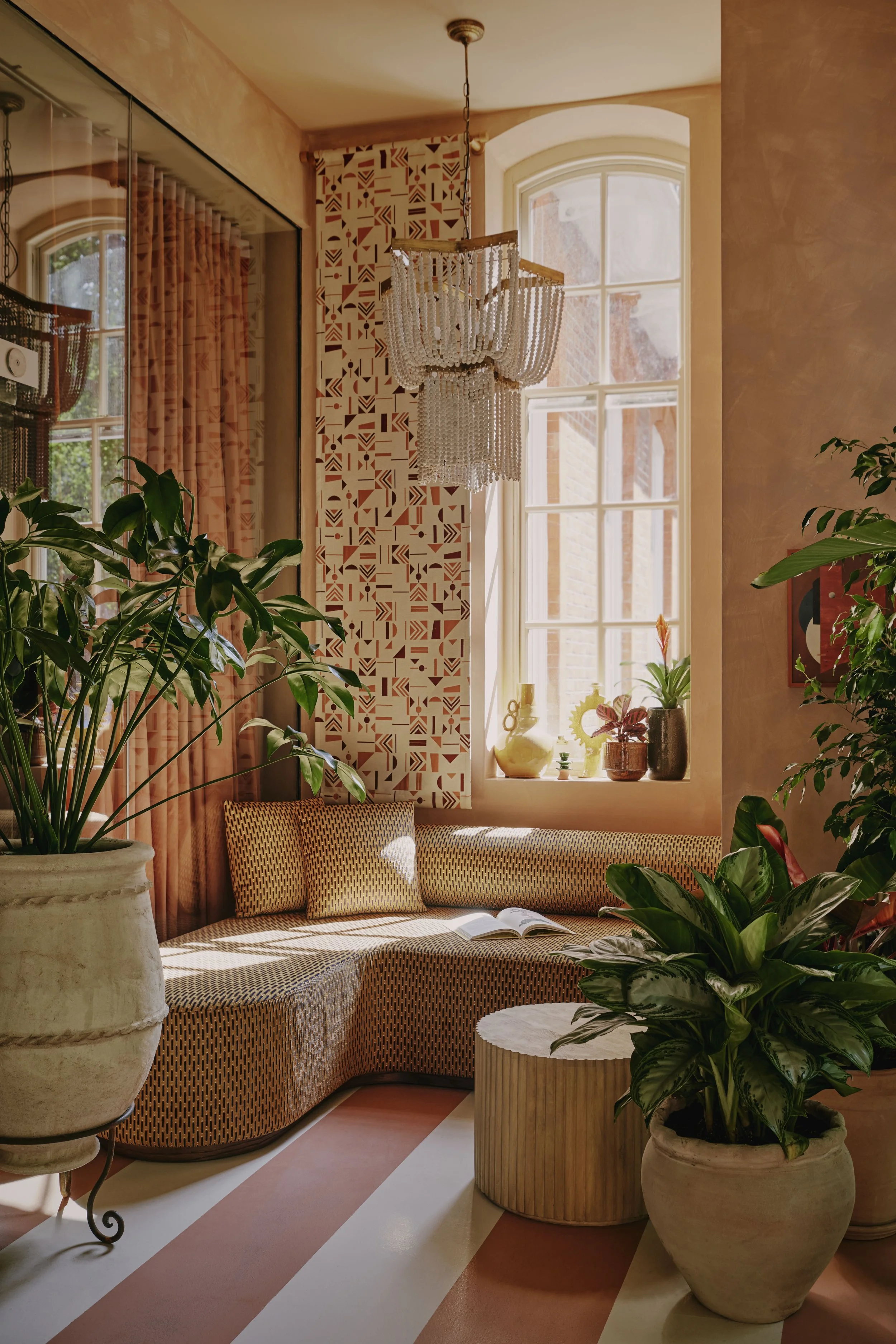 Interior design studios Atelier Ochre and House of Dré have collaborated to design the vibrant and glamorous interiors of Ember Locke, the first property in West London.