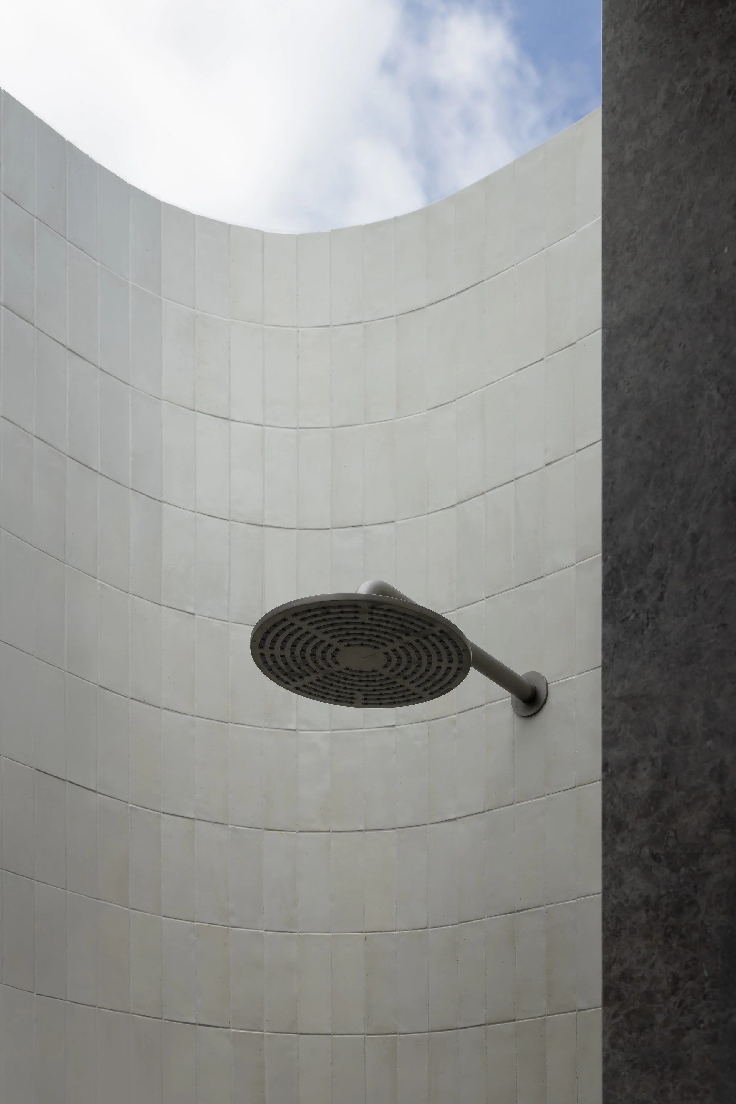 The upper level accommodates a study, master bedroom and bathroom, all shaped by an emphasis on daylight and outlook. Bespoke openings frame views of the sky, enhancing the sense of calm and connection to the outdoors. In the master bedroom, a skylight follows the raked roofline of the original cottage façade, allowing shifting light to animate the space throughout the day while offering glimpses of the city beyond. The bathroom continues this theme, with a concealed-framed skylight positioned above the double shower to bring natural light into the core of the home.
