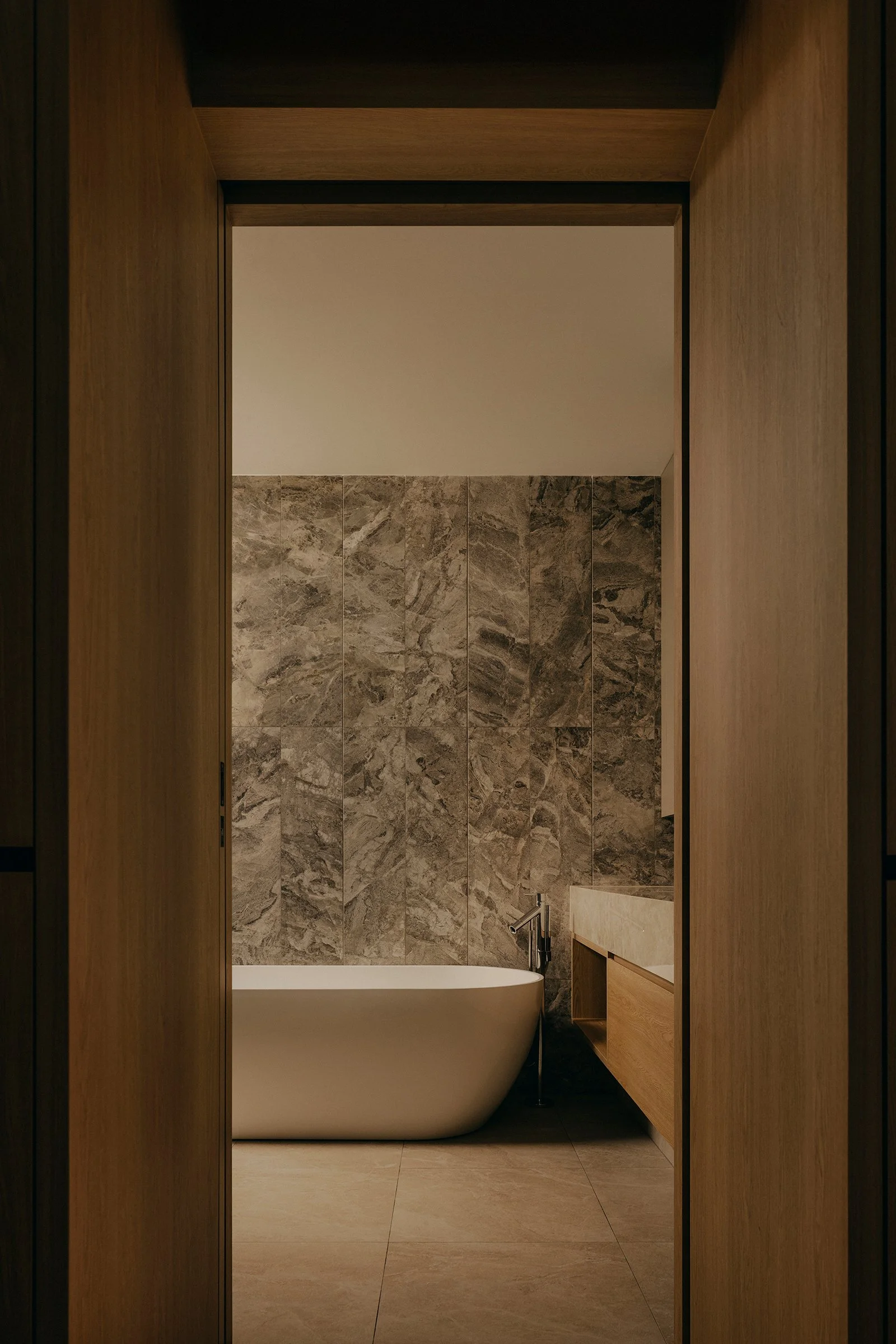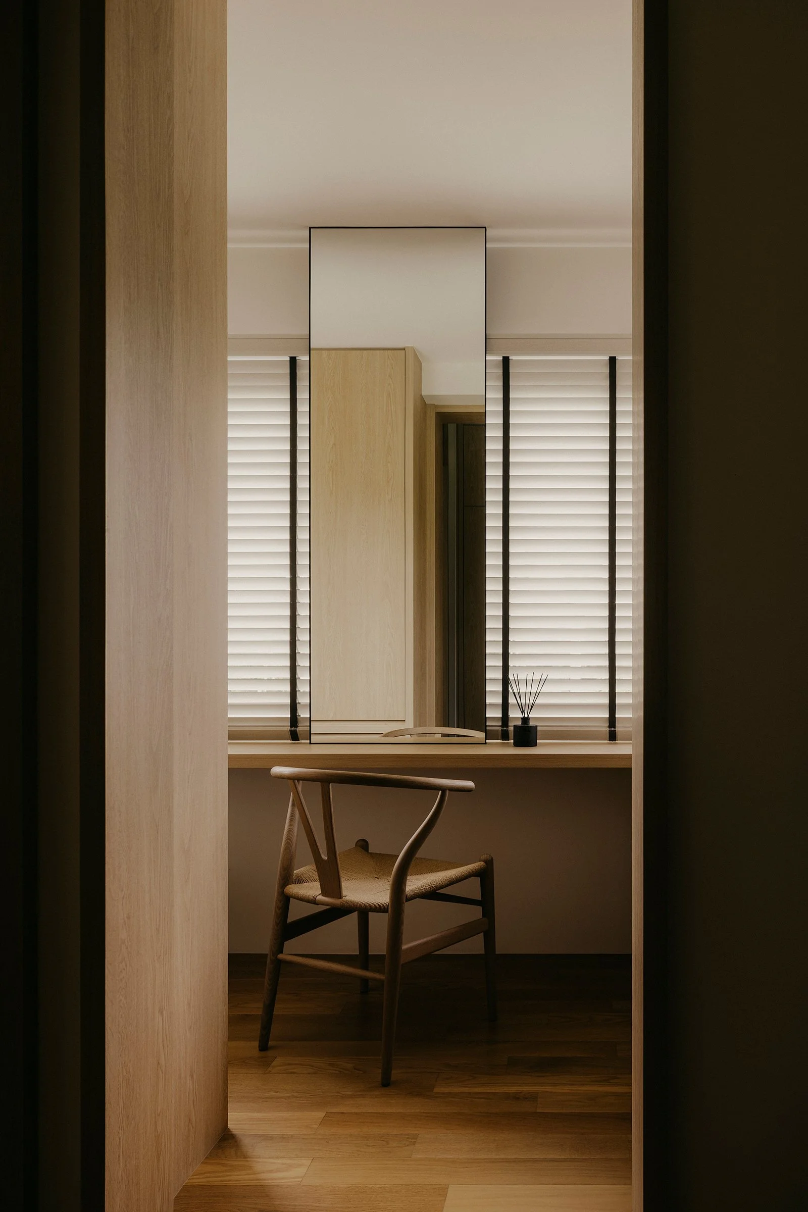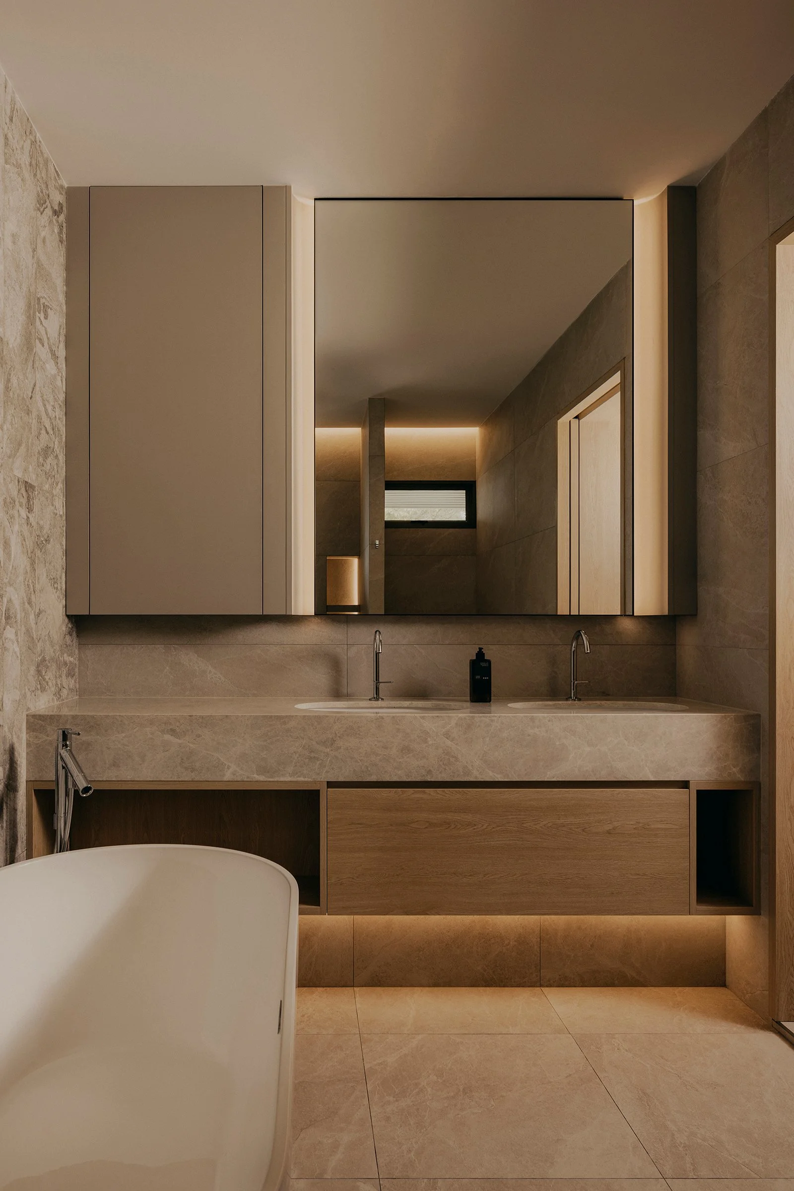 A defining move in the reconfigured layout is the enlarged opening toward the airwell. This expanded void strengthens visual continuity between levels and intensifies the presence of light as an architectural material. Drawing inspiration from James Turrell’s explorations of perception, illumination here is treated as atmosphere, subtle, shifting, and felt across the day as it washes over surfaces and edges, bringing depth to even the quietest corners.