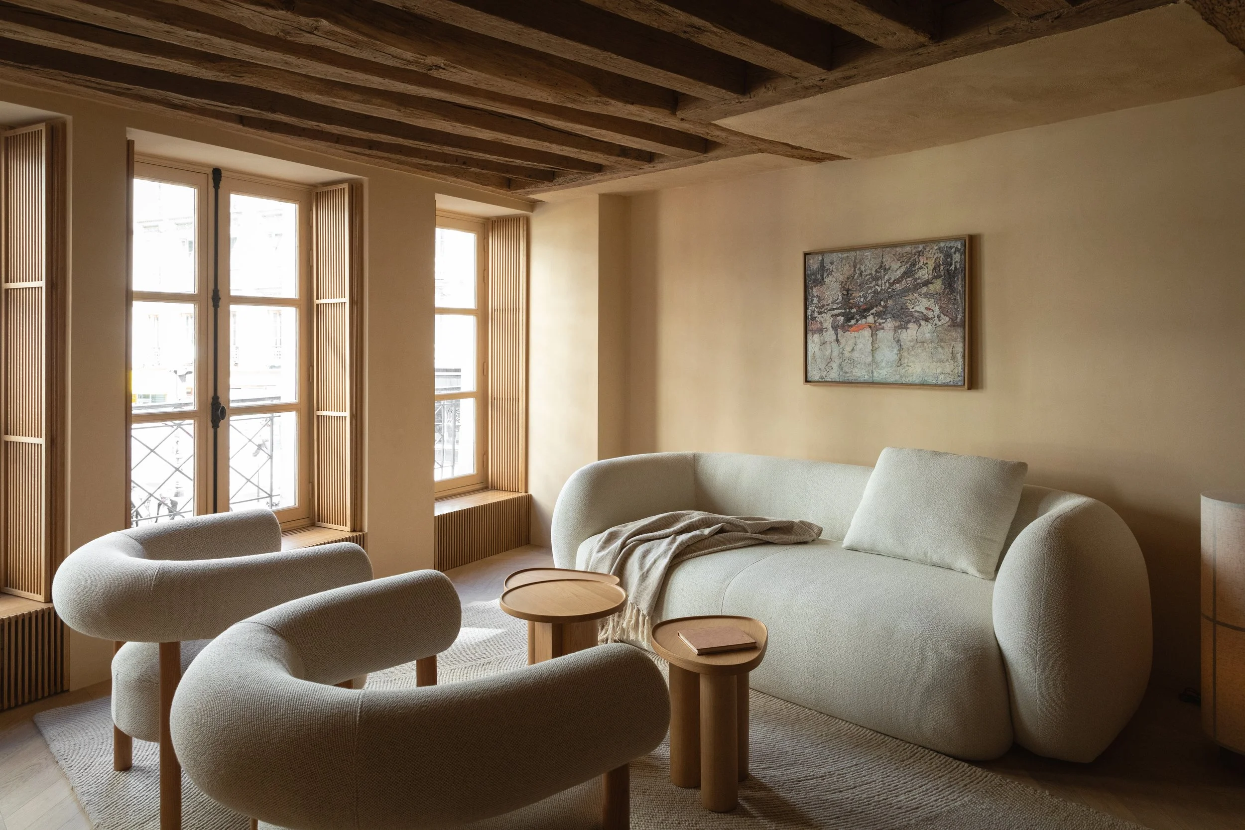 Light, proportion and material sensitivity guide Marais, a carefully considered apartment renovation by JiaHao LIAO, set within an 18th-century building in the heart of Paris’s historic Le Marais.