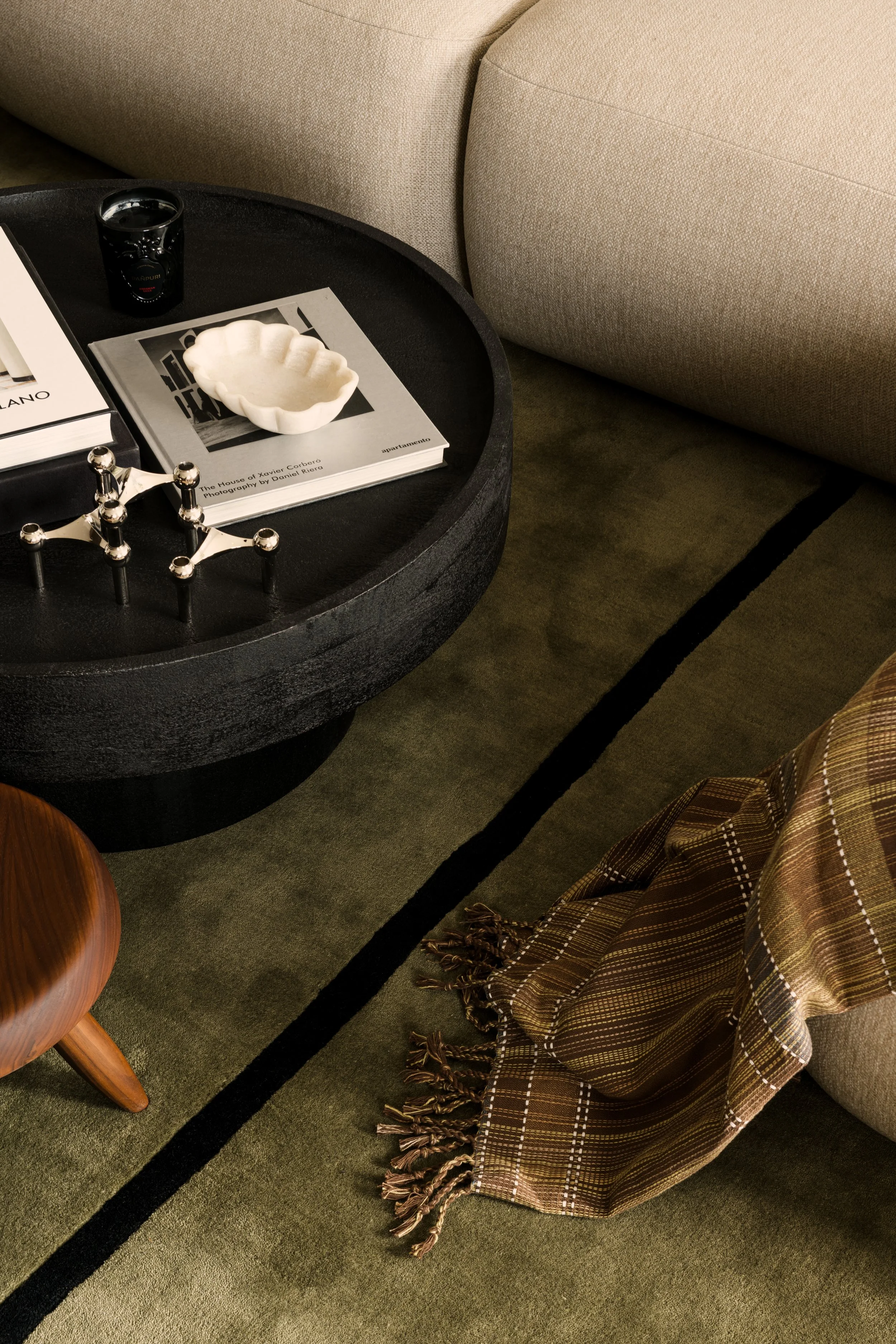 Furniture and objects are approached with equal precision. Bespoke joinery and built-in elements form a continuous thread, complemented by an understated selection of contemporary and vintage pieces. A Charlotte Perriand stool, a Vincent Van Duysen lounge chair, and a sculptural coffee table in black-stained mango wood punctuate the living area, each piece chosen for its material integrity and sculptural presence. The dining table, also custom-made, is anchored by minimalist chairs and offset by a vintage pendant overhead.
