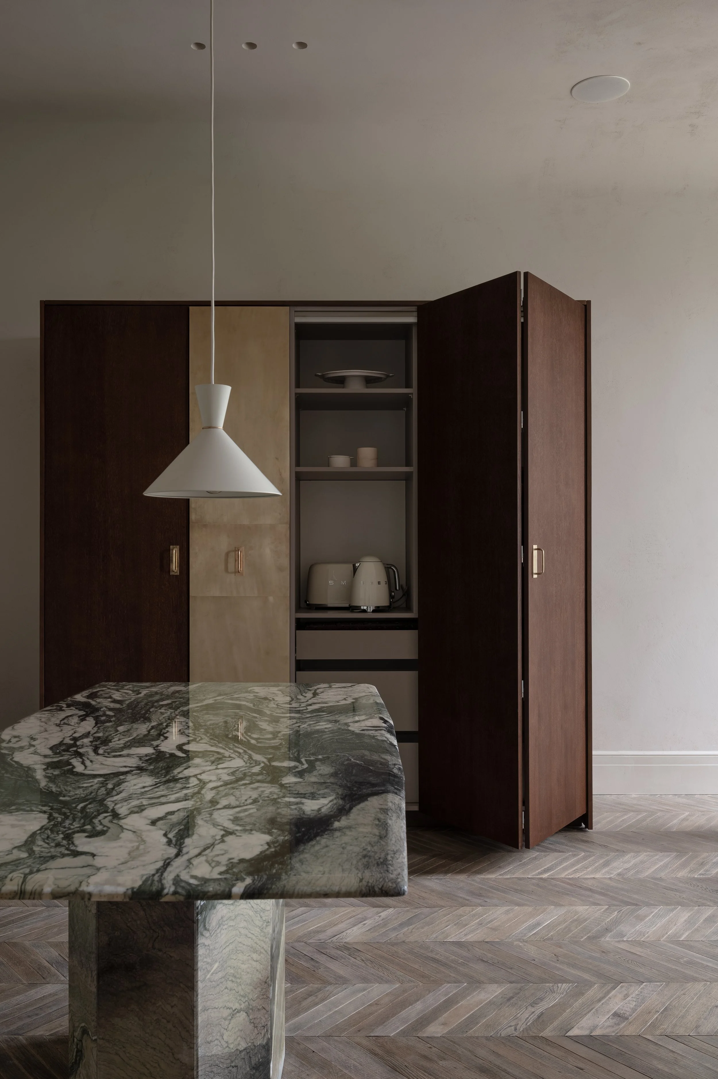 The client is a young woman, a fashion insider with a strong vision. This project was all about aesthetics and it was entirely designed to meet her requirements and standards of beauty. The client has a fascination with Paris and so the team’s target was to recreate a flair of a vintage apartment. Their solution was not to copy the “Parisian chic” tricks, avoiding the ornamental plaster and other obvious elements of direct quotation of this style. The focus was shifted to natural textures, a combination of softness and determined details, and an overall airiness and nuanced sophistication.