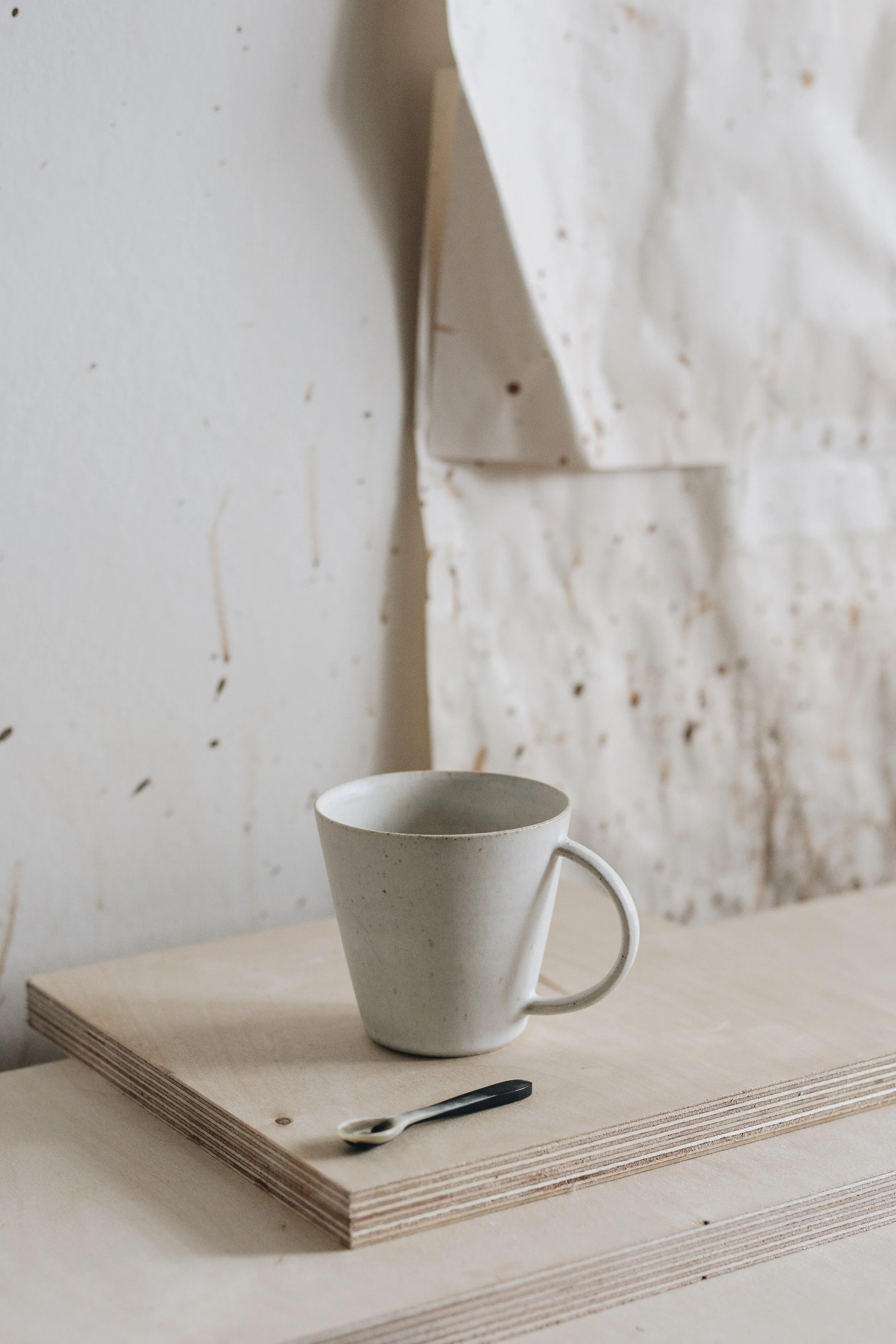 S: I've thrown over 500 of them in the last year but I still love making my black stoneware cups. I’ve been able to reduce the amount of clay I use to make each one, I don’t think I could throw them any thinner. It’s been a long process but with this form I’ve been able to improve my ability to match the idea in my head.