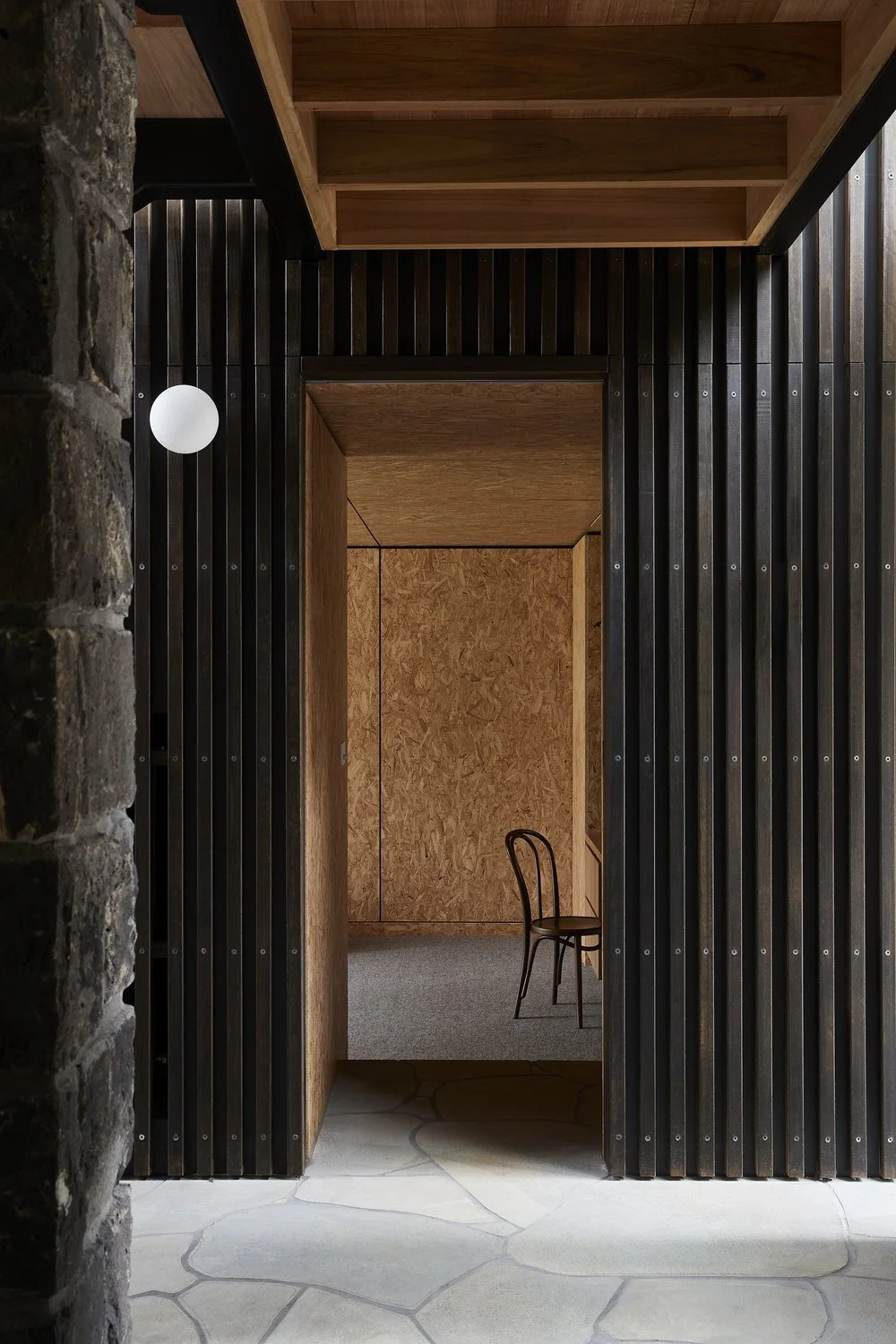 Throughout, attention to material reuse and conservation underscores a commitment to sustainability. Bluestone pitchers were salvaged and reinstalled, internal timber lining boards restored, and native vegetation preserved through a compact footprint. By retaining and extending the original building rather than demolishing, the project reduces embodied carbon while adding functional complexity.