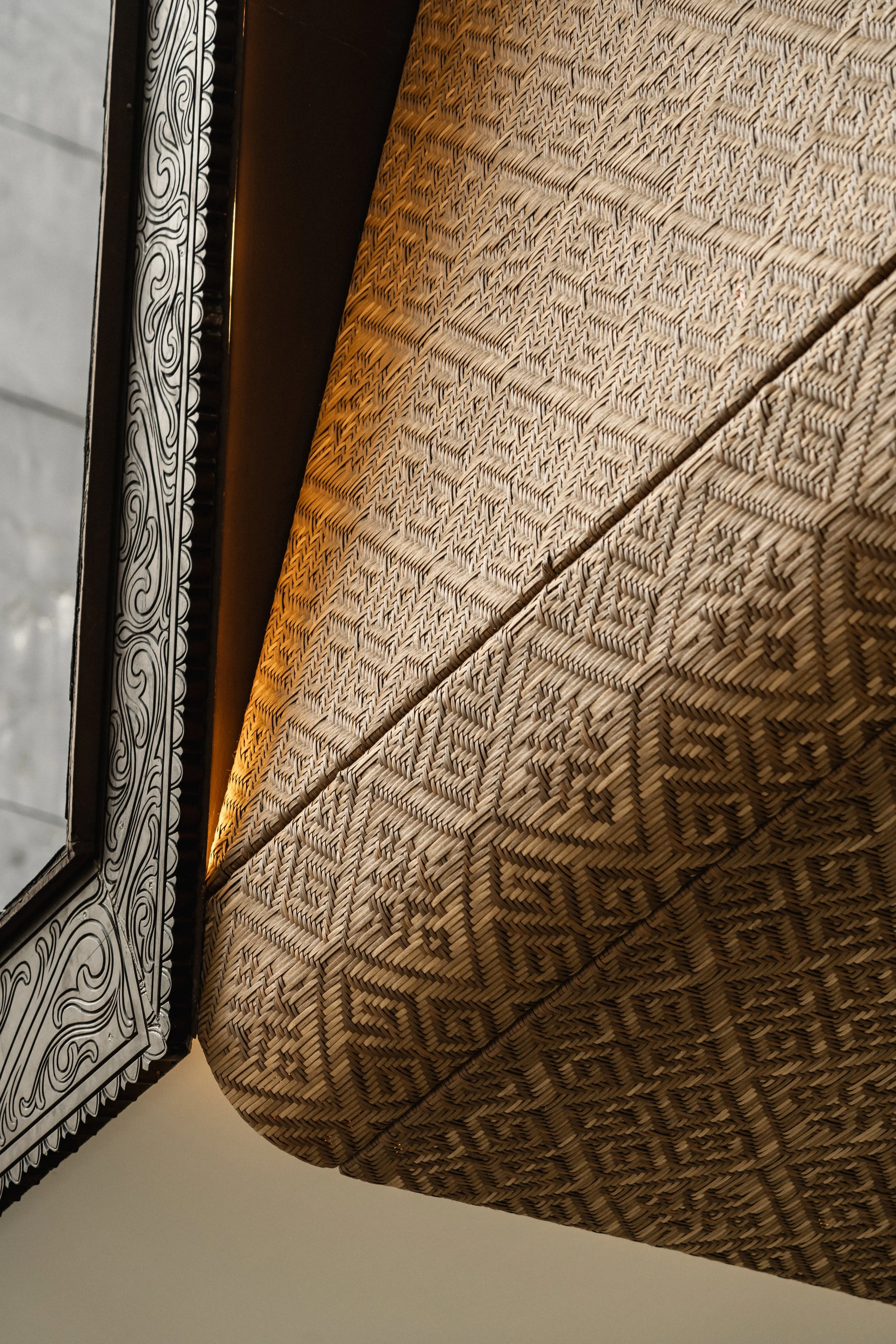 Materially, the home privileges touch and tone over gesture. Woven rattan ceilings, gorga patterning reimagined in muted hues, and Ulos-inspired accents are calibrated to sit comfortably within a serene base palette. Indonesian-made furniture forms the project’s core, augmented by selective international pieces that sustain the narrative without excess. Throughout, the composition balances symbolic meaning with day-to-day utility.