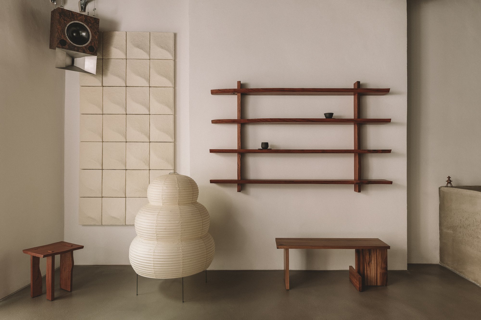 Seating by Lisbon studio Further THER continues the emphasis on low, grounded forms, while Vitra lighting contributes a soft, low-level glow that keeps the space contemplative and intimate. An artwork by Paul Schrader has been selected to sit within this muted palette, contributing a single visual note without disrupting the room’s tonal calm.